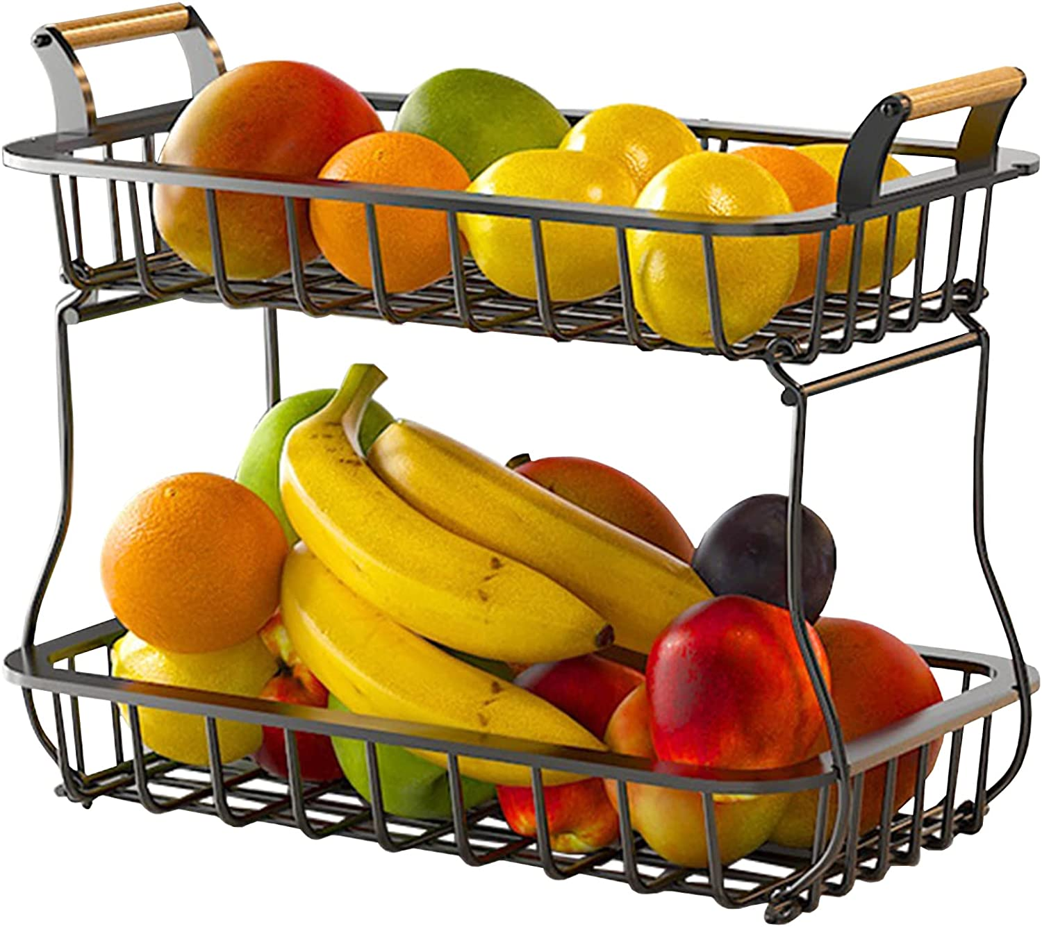 2 Tier Fruit Storage Basket Countertop for Kitchen, Bread Vegetable Farmhouse Fr