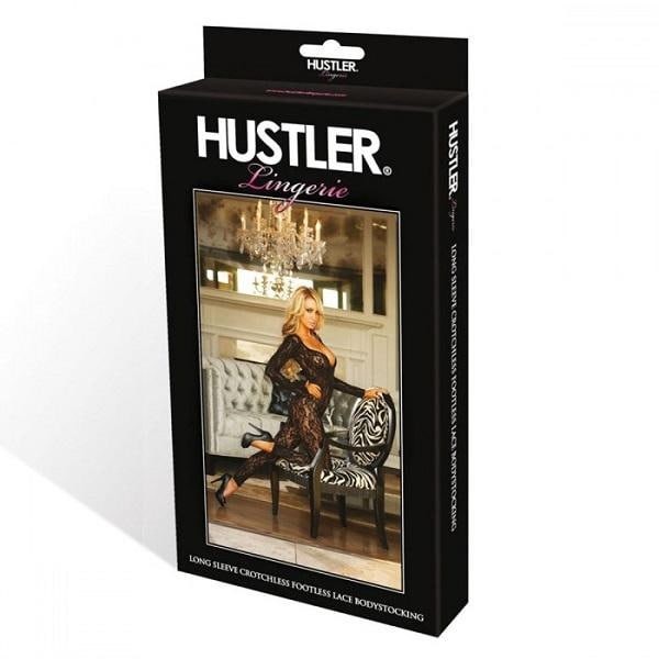 American Hustler – Long Sleeve Crotchless Lace Bodystocking Lace Bodystocking-Black