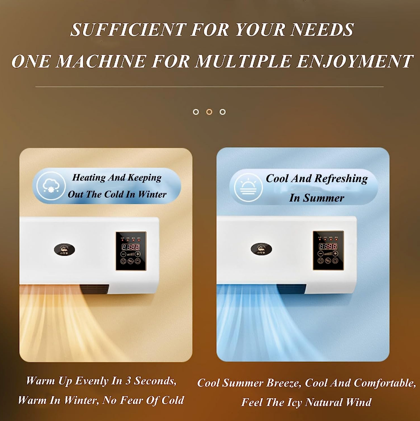 The wall unit air conditioner can be used not only as an air conditioner for cooling (natural wind) but also as a heater for heating to meet the needs of different seasons. Note: This product can not be cooled, blowing natural wind and hot air
