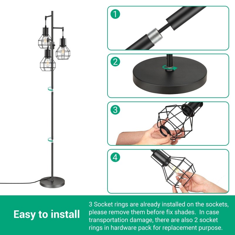 EDISHINE Dimmable Tree Floor Lamp Industrial Standing Lamp for Living Room