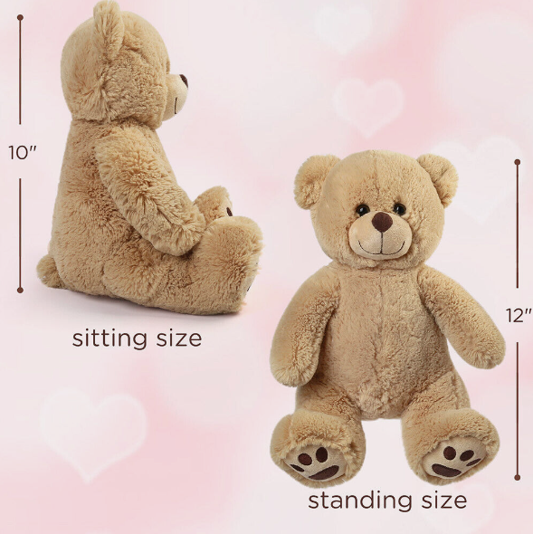 This cute teddy bear is about 10 inches tall(sitting size).