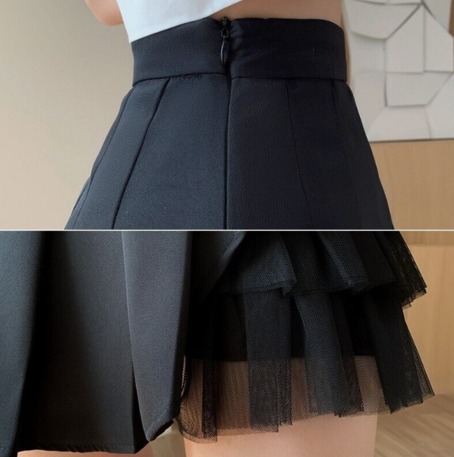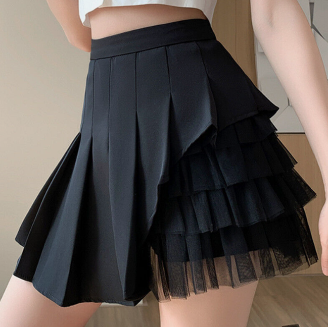 Have one to sell? Sell now Women's Asymmetrical Pleated Skirts Mesh Patchwork High Waist A-line Preppy