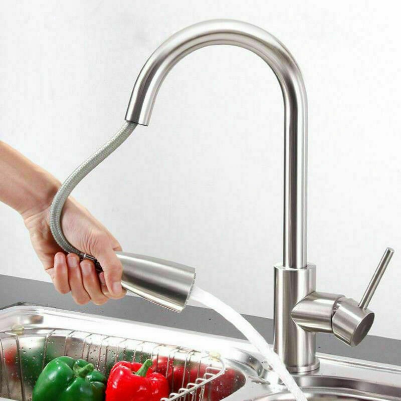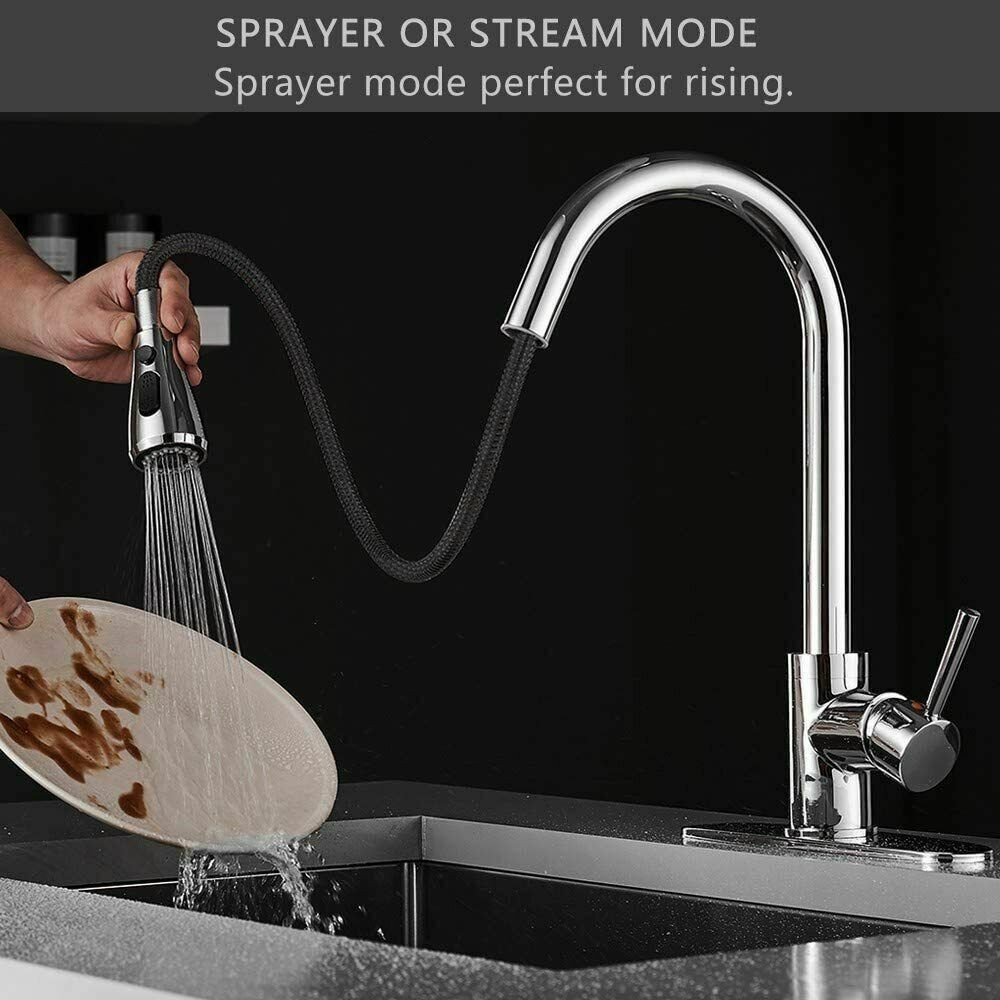 Kitchen Sink Faucet Pull Down Single Handle Swivel Sprayer Mixer Tap W/Plate