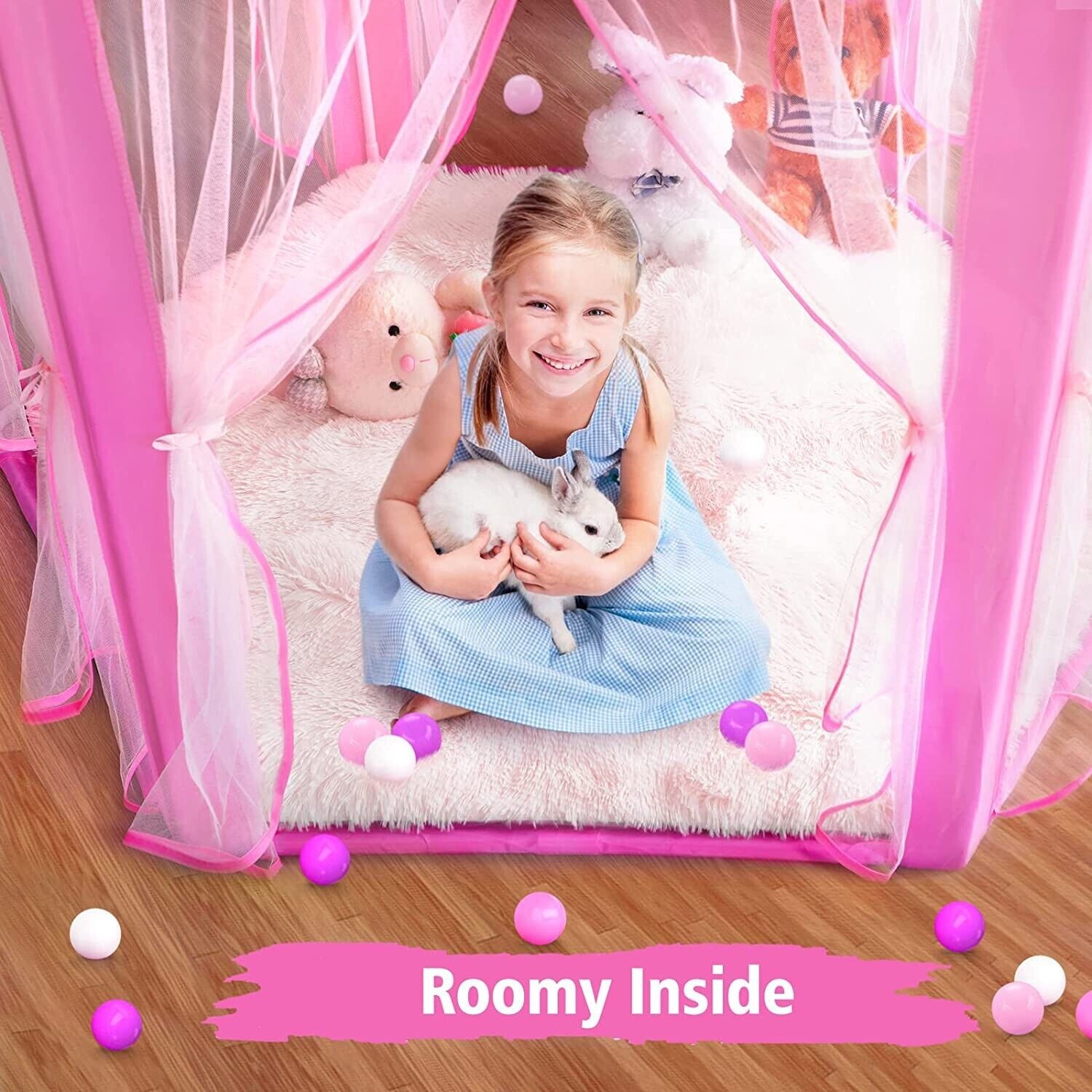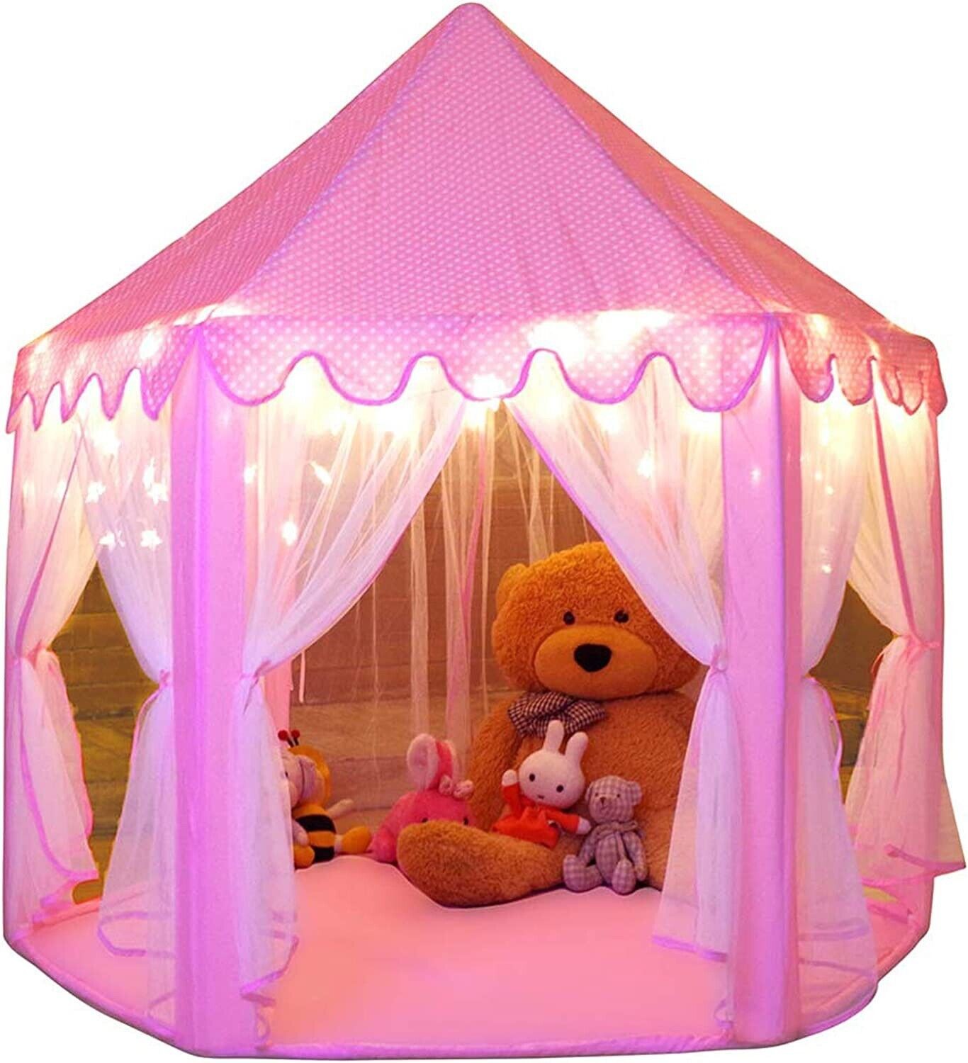 Large Playhouse Castle Play Tent with Star Lights Toy for Kids Girls Game (Pink)