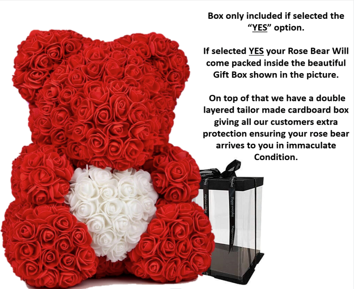 • If selected With gift box your Rose Bear Will come packed inside the beautiful Gift Box shown in the picture.