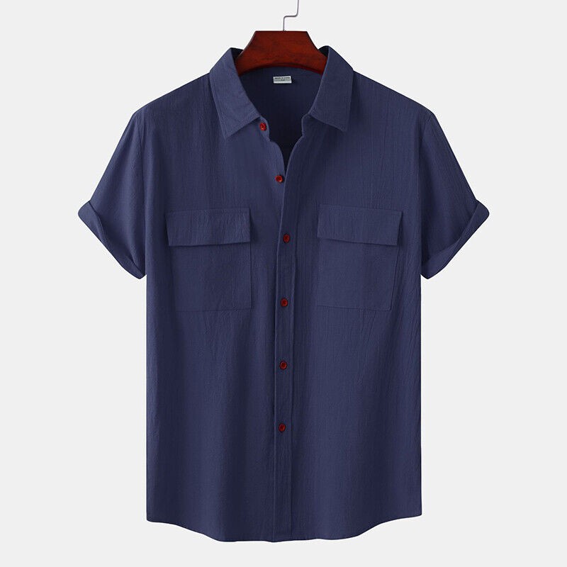 Men's Casual Button Down Shirts Short Sleeve Beach Linen Cotton Summer Shirt ❀