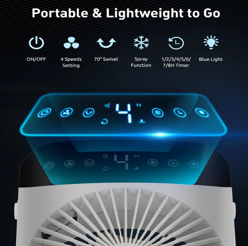 • ❄【Auto Timer & Safety Upgrade】Our mini air conditioner fan adds 1, 2, 4 or 8 hours automatic shut-off function to prevent colds and extra energy costs. More comprehensive safety functions, automatic suspension of work in case of water shortage; Under no operation for 24 hours, it will automatically shut down to better protect the equipment.