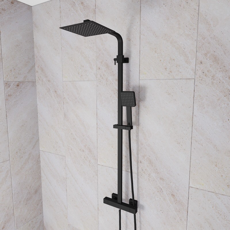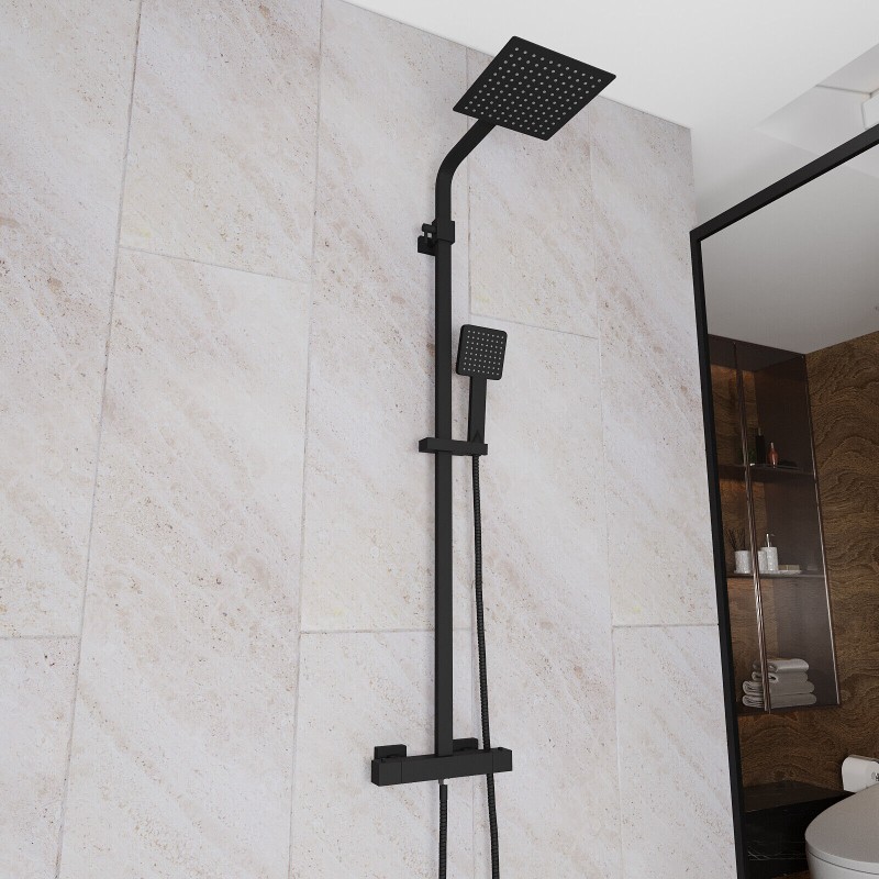 Modern Square Matte Black Exposed Thermostatic Mixer Shower Set With Shower Head