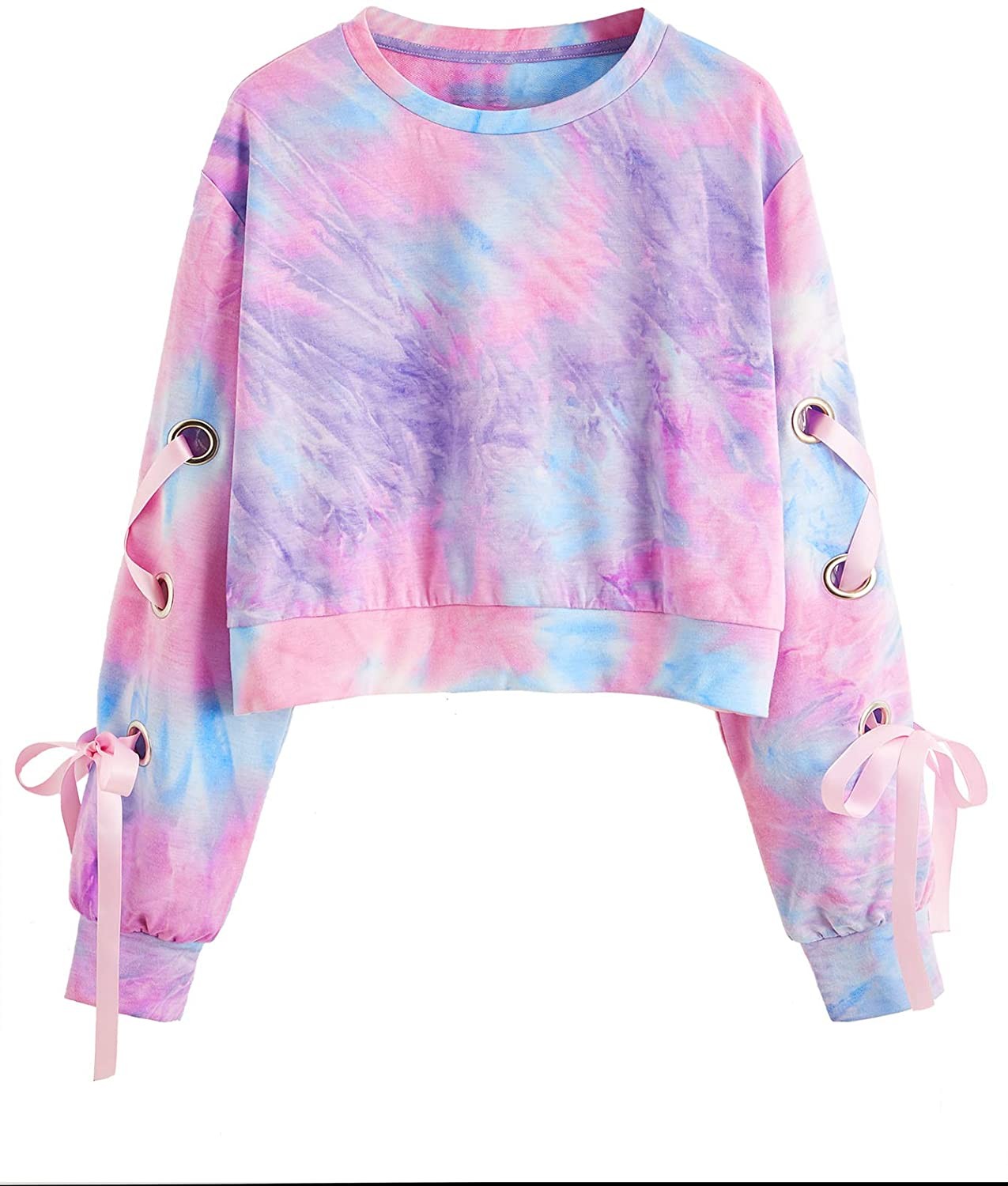 SweatyRocks Women's Casual Lace Up Long Sleeve Pullover Crop Top Sweatshirt
