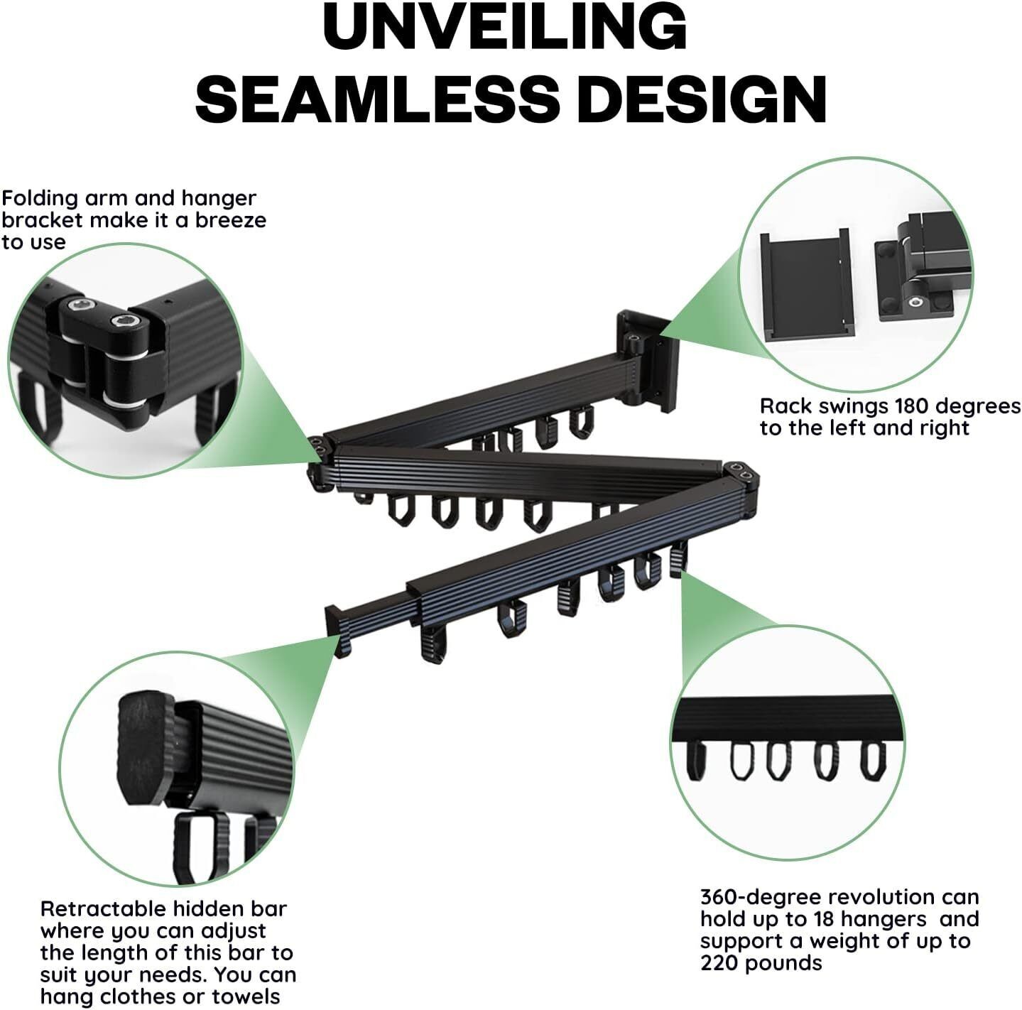 Wall Mounted Clothes Hanger Rack Laundry - Retractable & Collapsible Tri-Fold