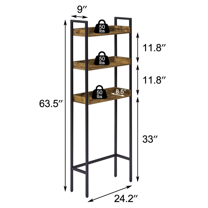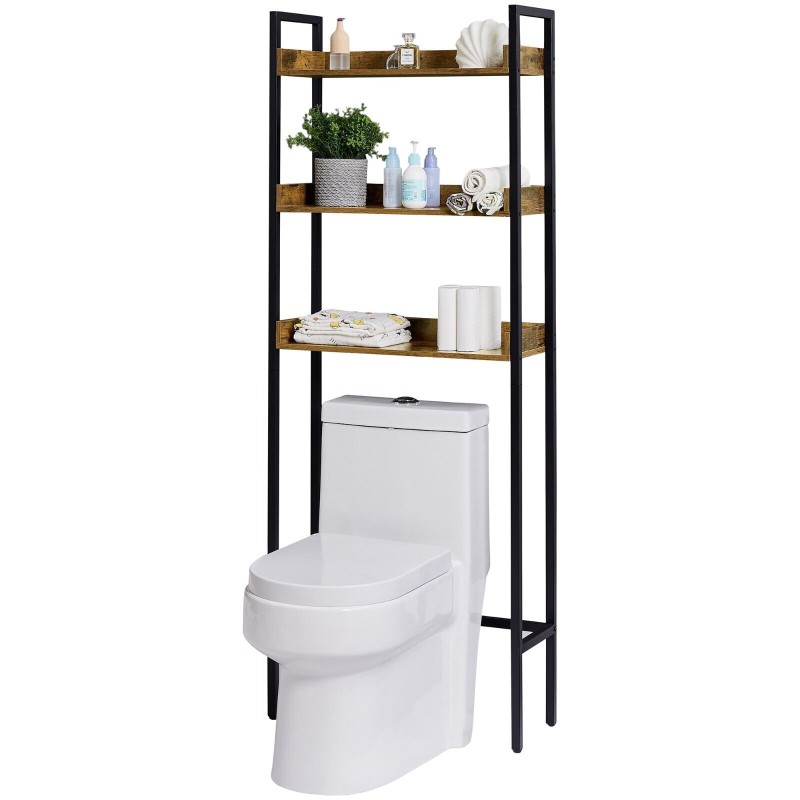 Wooden Over the Toilet Bathroom Storage 3-Tier Shelf Rack Metal Frame Organizer
