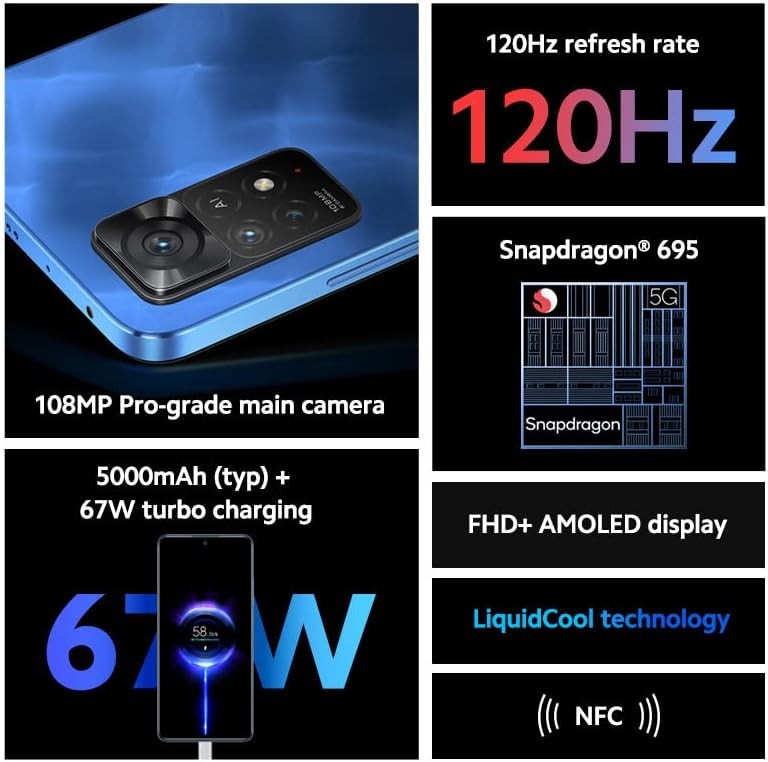 Xiaomi Redmi Note 11 Pro 5G + 4G Global Version 128GB + 8GB Unlocked 6.67" 108MP Cam Night Mode (Not Verizon Sprint Boost Cricket Metro At&T) + Extra (w/Fast Car 51W Charger Bundle) (Graphite Gray)